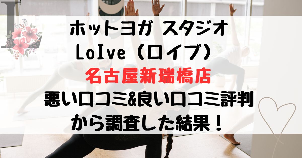 こちらの記事では、ホットヨガloIve(ロイブ)名古屋新瑞橋店の悪い&良い口コミ・評判をGoogle map上の口コミ(2025年10月現在の情報)から調査した結果をご紹介しています。 ロイブ(loIve)名古屋新瑞橋店は地下鉄「新瑞橋駅」4番出口より徒歩5分♪ 近隣のホットヨガスタジオとの口コミ・評判を比較して、あなたに最適なホットヨガスタジオ選びの参考になれば幸いです。 \95%の人が期待した効果を得られたと回答/ loIve公式サイトを見る ダイエットに失敗続きの人生にさようなら! 【loIve(ロイブ)名古屋新... -
