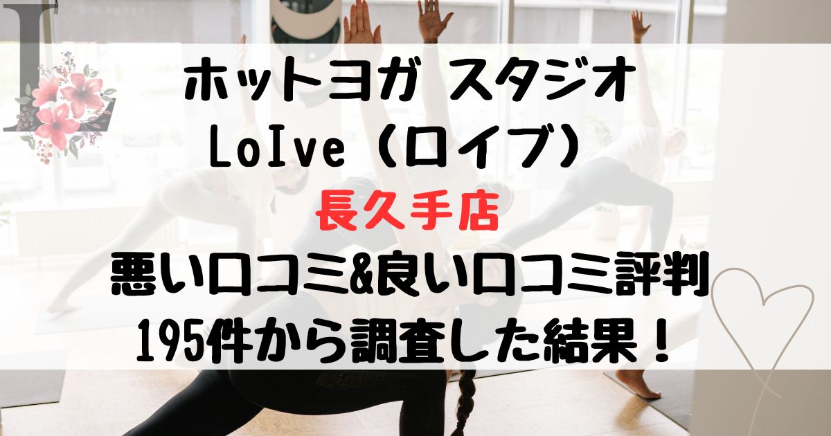 こちらの記事では、ホットヨガloIve(ロイブ)長久手店の悪い&良い口コミ・評判をGoogle map上の口コミ195件(2025年10月現在の情報)から調査した結果をご紹介しています。 ロイブ(loIve)長久手店は杁ヶ池公園駅と直結近で雨の日でも濡れる心配なし♪ 近隣のホットヨガスタジオとの口コミ・評判を比較して、あなたに最適なホットヨガスタジオ選びの参考になれば幸いです。 \95%の人が期待した効果を得られたと回答/ loIve公式サイトを見る ダイエットに失敗続きの人生にさようなら! 【loIve(ロイブ)長久手... -