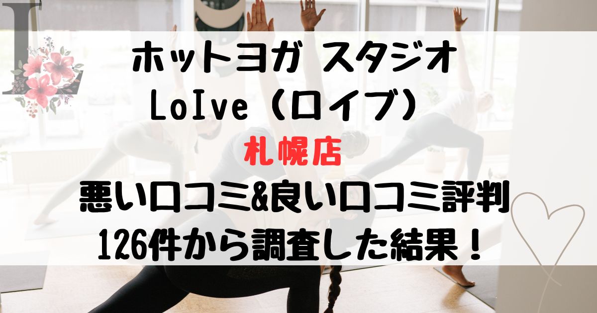 こちらの記事では、ホットヨガloIve(ロイブ)札幌店の悪い&良い口コミ・評判をGoogle map上の口コミ126件(2025年10月現在の情報)から調査した結果をご紹介しています。 ロイブ(loIve)札幌店は地下直結なので雨や雪の日にも安心して通うことができるスタジオです♪ 近隣のホットヨガスタジオとの口コミ・評判を比較して、あなたに最適なホットヨガスタジオ選びの参考になれば幸いです。 \95%の人が期待した効果を得られたと回答/ loIve公式サイトを見る ダイエットに失敗続きの人生にさようなら! 【loIve(... -