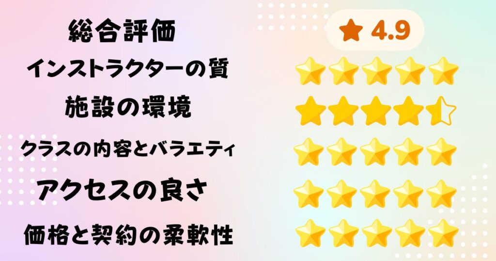 インストラクターもフロントスタッフも、皆さん優しく感じ良いので、通いやすいです。